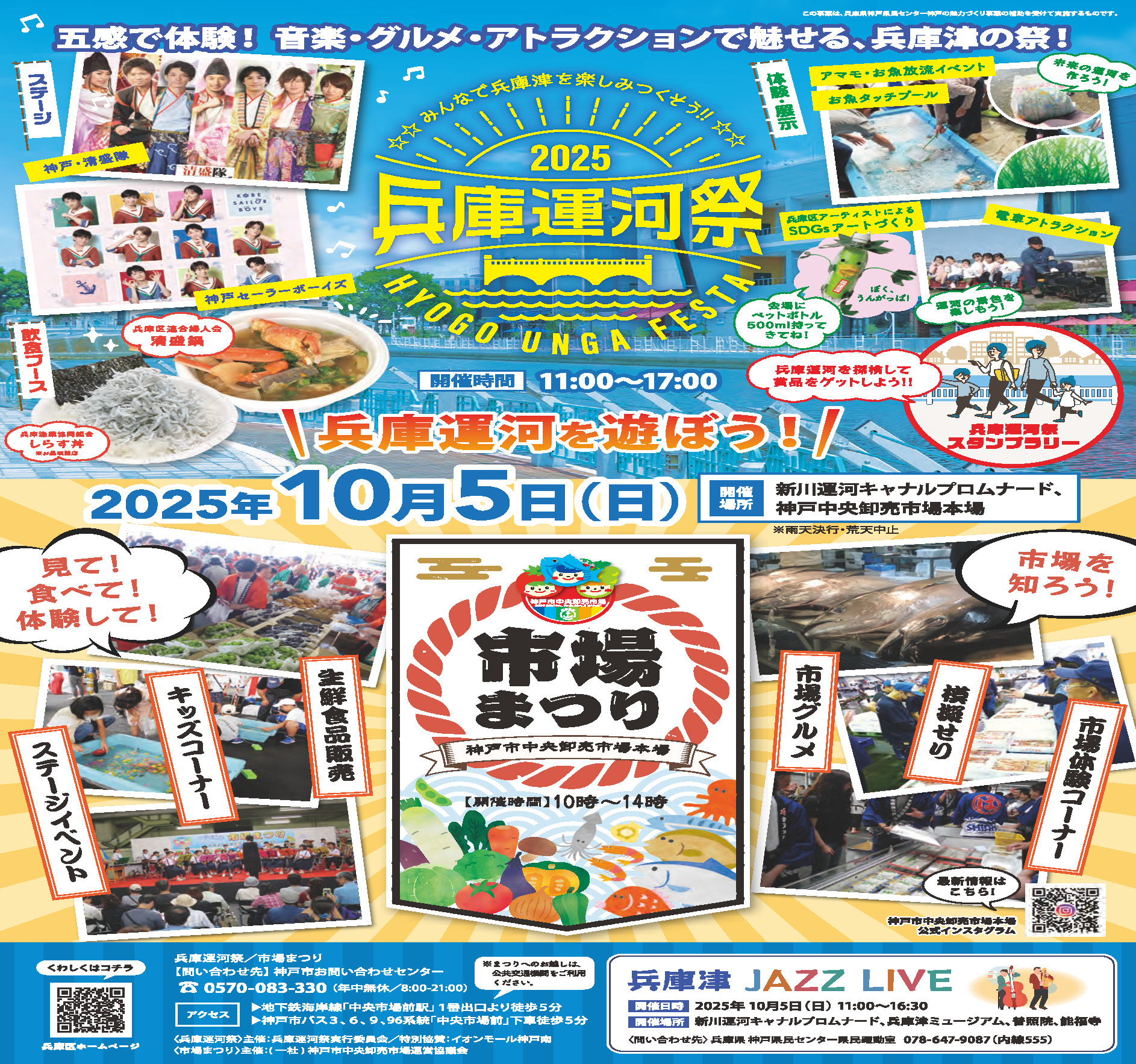 本年は「市場まつり」、「兵庫津JAZZ LIVE」が同日開催を予定しており、兵庫津一帯が賑わいにあふれる一日となります。