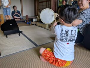 後半から到着したメンバーも数人おり、いつもの音遊びの会らしさが存分に発揮される。一般参加の方々も音遊び会の本領に感化されたようで、小学生のそうたくんも、いつしかお母さんのほうだけではなくみんなのほうを向いていた。