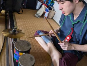 6.長井くん(ドラムセット)と学生さん(フロアタム)