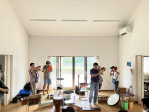 打楽器が多い中で、「管がいっぱい」な演奏も試みたり、明石組が前の日に万博、お揃いのミャクミャクTシャツ着てるよ「ミャクミャクズ」として演奏。ミャクミャクしてたね。