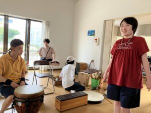 1 マーガレット安井さんの音の自己紹介。太鼓叩く。