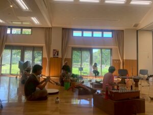 そして、今回初めてワークショップで使用した神戸市長田区の池田南部公会堂は、公園と隣接した空間で、音もよく響き、公園の緑、遊ぶ人、通り過ぎる人が景色となっていて、とてもリラックスした2時間のワークショップでした。