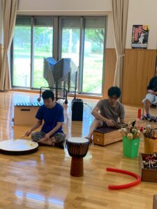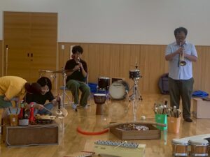 ③ 江崎(トランペット)、ももか(レインスティック・小物)・・・トランペットのメロディにレインスティックの音、草原か牧場の風景のようなアンビエント音楽でした。